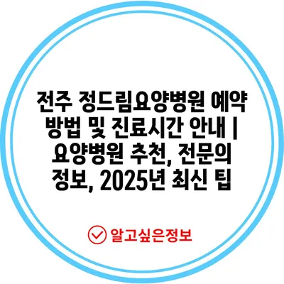 전주 정드림요양병원 예약 방법 및 진료시간 안내 | 요양병원 추천, 전문의 정보, 2025년 최신 팁