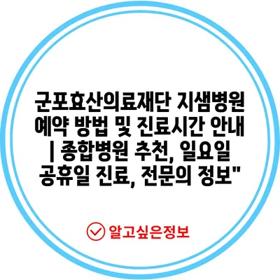 군포효산의료재단 지샘병원 예약 방법 및 진료시간 안내 | 종합병원 추천, 일요일 공휴일 진료, 전문의 정보”