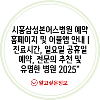 시흥삼성본어스병원 예약 홈페이지 및 어플앱 안내 | 진료시간, 일요일 공휴일 예약, 전문의 추천 및 유명한 병원 2025″