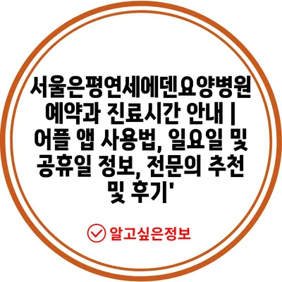 서울은평연세에덴요양병원 예약과 진료시간 안내 | 어플 앱 사용법, 일요일 및 공휴일 정보, 전문의 추천 및 후기’
