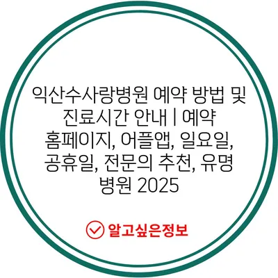 익산수사랑병원 예약 방법 및 진료시간 안내 | 예약 홈페이지, 어플앱, 일요일, 공휴일, 전문의 추천, 유명 병원 2025