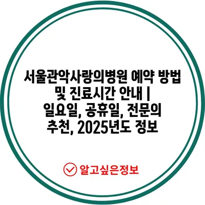서울관악사랑의병원 예약 방법 및 진료시간 안내 | 일요일, 공휴일, 전문의 추천, 2025년도 정보