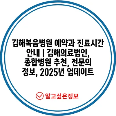 김해복음병원 예약과 진료시간 안내 | 김해의료법인, 종합병원 추천, 전문의 정보, 2025년 업데이트