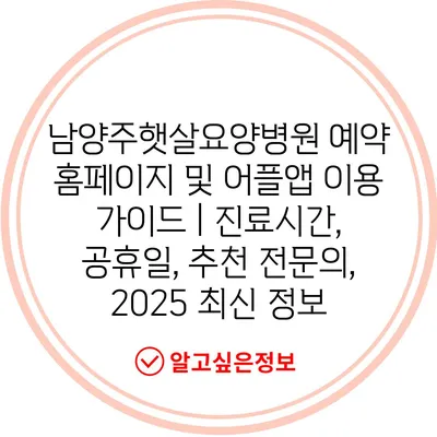 남양주햇살요양병원 예약 홈페이지 및 어플앱 이용 가이드 | 진료시간, 공휴일, 추천 전문의, 2025 최신 정보