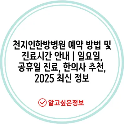 천지인한방병원 예약 방법 및 진료시간 안내 | 일요일, 공휴일 진료, 한의사 추천, 2025 최신 정보