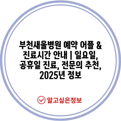 부천새울병원 예약 어플 & 진료시간 안내 | 일요일, 공휴일 진료, 전문의 추천, 2025년 정보