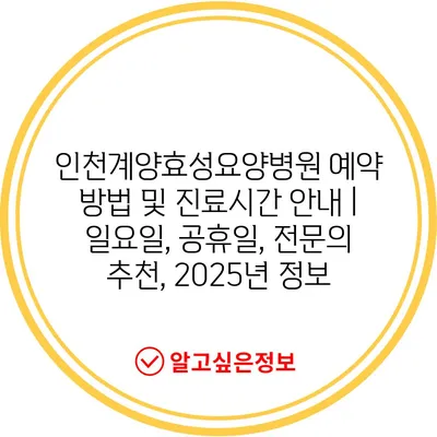 인천계양효성요양병원 예약 방법 및 진료시간 안내 | 일요일, 공휴일, 전문의 추천, 2025년 정보