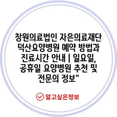 창원의료법인 자은의료재단 덕산요양병원 예약 방법과 진료시간 안내 | 일요일, 공휴일 요양병원 추천 및 전문의 정보”