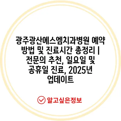 광주광산에스엠치과병원 예약 방법 및 진료시간 총정리 | 전문의 추천, 일요일 및 공휴일 진료, 2025년 업데이트