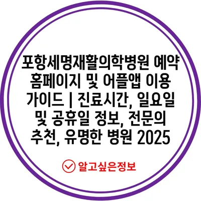 포항세명재활의학병원 예약 홈페이지 및 어플앱 이용 가이드 | 진료시간, 일요일 및 공휴일 정보, 전문의 추천, 유명한 병원 2025