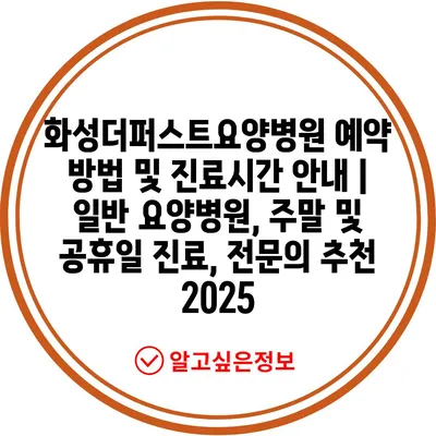 화성더퍼스트요양병원 예약 방법 및 진료시간 안내 | 일반 요양병원, 주말 및 공휴일 진료, 전문의 추천 2025