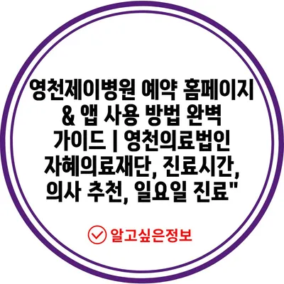 영천제이병원 예약 홈페이지 & 앱 사용 방법 완벽 가이드 | 영천의료법인 자혜의료재단, 진료시간, 의사 추천, 일요일 진료”