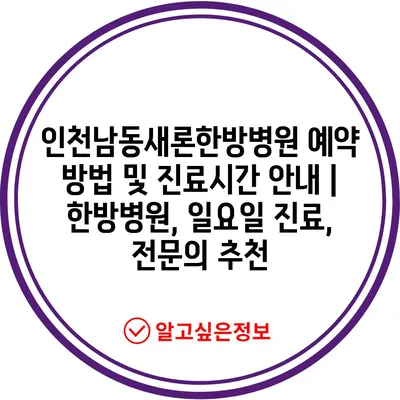 인천남동새론한방병원 예약 방법 및 진료시간 안내 | 한방병원, 일요일 진료, 전문의 추천