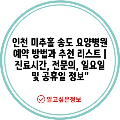 인천 미추홀 송도 요양병원 예약 방법과 추천 리스트 | 진료시간, 전문의, 일요일 및 공휴일 정보”