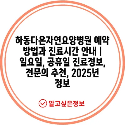 하동다온자연요양병원 예약 방법과 진료시간 안내 | 일요일, 공휴일 진료정보, 전문의 추천, 2025년 정보