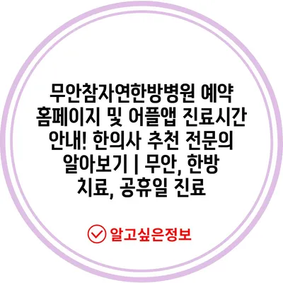 무안참자연한방병원 예약 홈페이지 및 어플앱 진료시간 안내! 한의사 추천 전문의 알아보기 | 무안, 한방 치료, 공휴일 진료