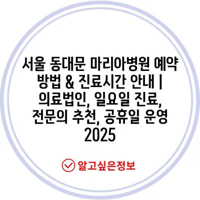 서울 동대문 마리아병원 예약 방법 & 진료시간 안내 | 의료법인, 일요일 진료, 전문의 추천, 공휴일 운영 2025
