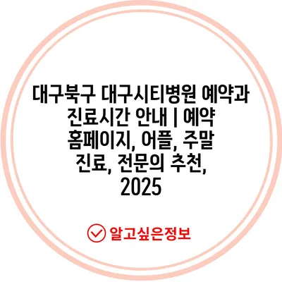 대구북구 대구시티병원 예약과 진료시간 안내 | 예약 홈페이지, 어플, 주말 진료, 전문의 추천, 2025
