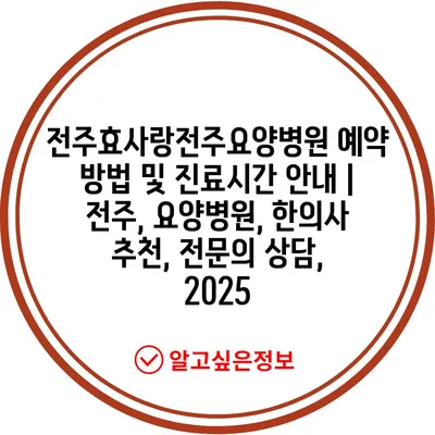 전주효사랑전주요양병원 예약 방법 및 진료시간 안내 | 전주, 요양병원, 한의사 추천, 전문의 상담, 2025