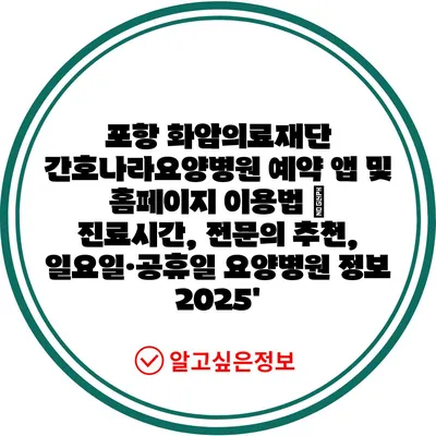 포항 화암의료재단 간호나라요양병원 예약 앱 및 홈페이지 이용법 | 진료시간, 전문의 추천, 일요일·공휴일 요양병원 정보 2025′