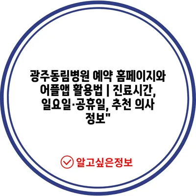 광주동림병원 예약 홈페이지와 어플앱 활용법 | 진료시간, 일요일·공휴일, 추천 의사 정보”