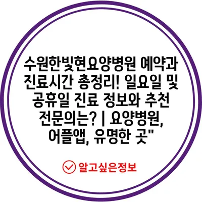 수원한빛현요양병원 예약과 진료시간 총정리! 일요일 및 공휴일 진료 정보와 추천 전문의는? | 요양병원, 어플앱, 유명한 곳”
