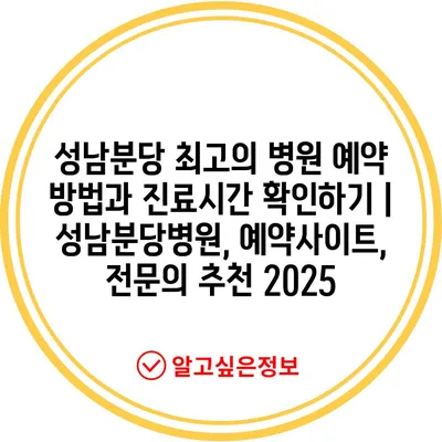 성남분당 최고의 병원 예약 방법과 진료시간 확인하기 | 성남분당병원, 예약사이트, 전문의 추천 2025