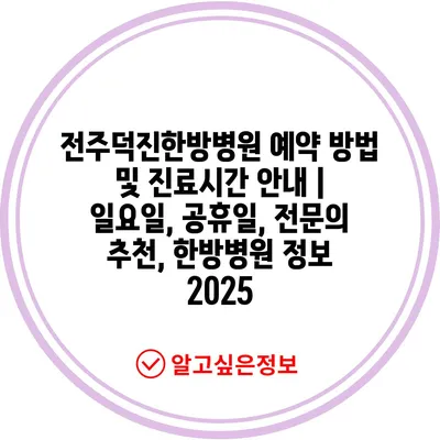 전주덕진한방병원 예약 방법 및 진료시간 안내 | 일요일, 공휴일, 전문의 추천, 한방병원 정보 2025