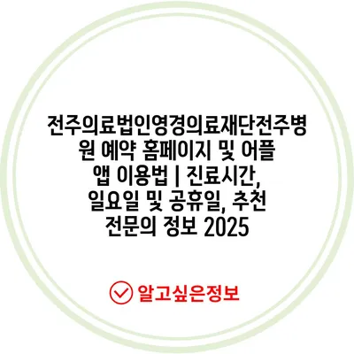 전주의료법인영경의료재단전주병원 예약 홈페이지 및 어플 앱 이용법 | 진료시간, 일요일 및 공휴일, 추천 전문의 정보 2025