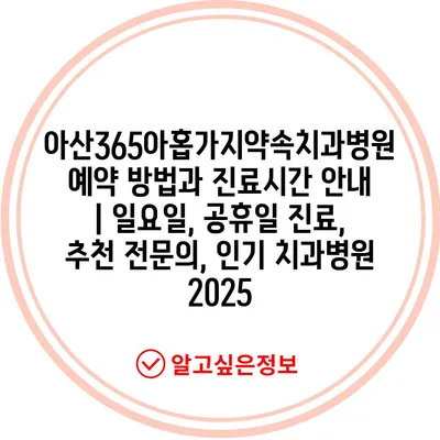 아산365아홉가지약속치과병원 예약 방법과 진료시간 안내 | 일요일, 공휴일 진료, 추천 전문의, 인기 치과병원 2025