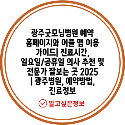 광주굿모닝병원 예약 홈페이지와 어플 앱 이용 가이드| 진료시간, 일요일/공휴일 의사 추천 및 전문가 잘보는 곳 2025 | 광주병원, 예약방법, 진료정보