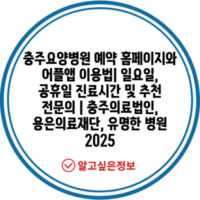 충주요양병원 예약 홈페이지와 어플앱 이용법| 일요일, 공휴일 진료시간 및 추천 전문의 | 충주의료법인, 용은의료재단, 유명한 병원 2025