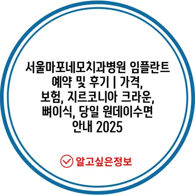 서울마포네모치과병원 임플란트 예약 및 후기 | 가격, 보험, 지르코니아 크라운, 뼈이식, 당일 원데이수면 안내 2025