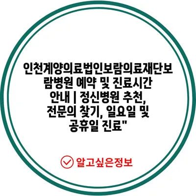 인천계양의료법인보람의료재단보람병원 예약 및 진료시간 안내 | 정신병원 추천, 전문의 찾기, 일요일 및 공휴일 진료”