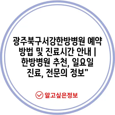 광주북구서강한방병원 예약 방법 및 진료시간 안내 | 한방병원 추천, 일요일 진료, 전문의 정보”