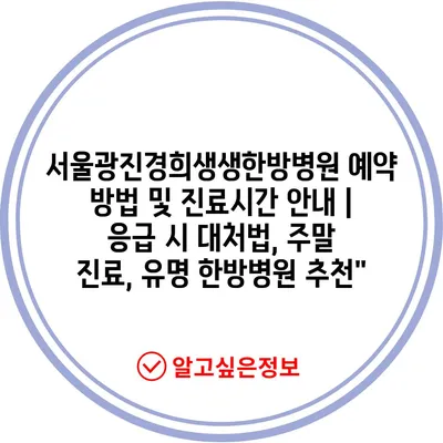 서울광진경희생생한방병원 예약 방법 및 진료시간 안내 | 응급 시 대처법, 주말 진료, 유명 한방병원 추천”