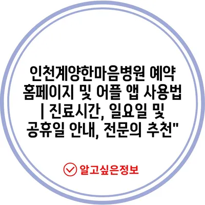 인천계양한마음병원 예약 홈페이지 및 어플 앱 사용법 | 진료시간, 일요일 및 공휴일 안내, 전문의 추천”