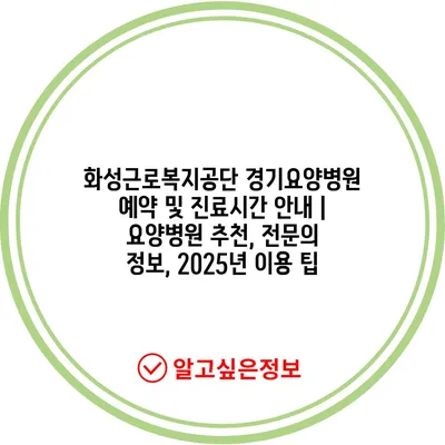 화성근로복지공단 경기요양병원 예약 및 진료시간 안내 | 요양병원 추천, 전문의 정보, 2025년 이용 팁