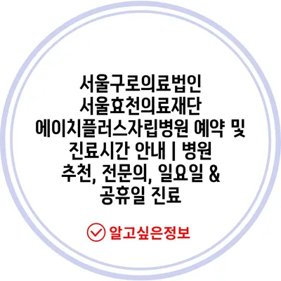 서울구로의료법인 서울효천의료재단 에이치플러스자립병원 예약 및 진료시간 안내 | 병원 추천, 전문의, 일요일 & 공휴일 진료