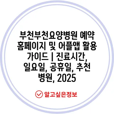 부천부천요양병원 예약 홈페이지 및 어플앱 활용 가이드 | 진료시간, 일요일, 공휴일, 추천 병원, 2025