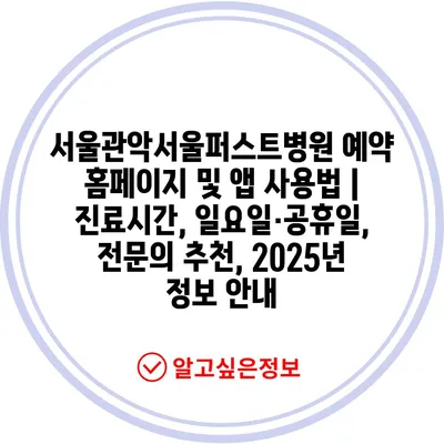 서울관악서울퍼스트병원 예약 홈페이지 및 앱 사용법 | 진료시간, 일요일·공휴일, 전문의 추천, 2025년 정보 안내