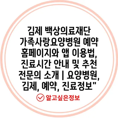 김제 백상의료재단 가족사랑요양병원 예약 홈페이지와 앱 이용법, 진료시간 안내 및 추천 전문의 소개 | 요양병원, 김제, 예약, 진료정보”