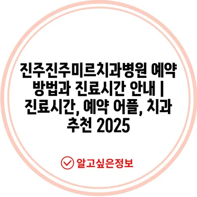 진주진주미르치과병원 예약 방법과 진료시간 안내 | 진료시간, 예약 어플, 치과 추천 2025