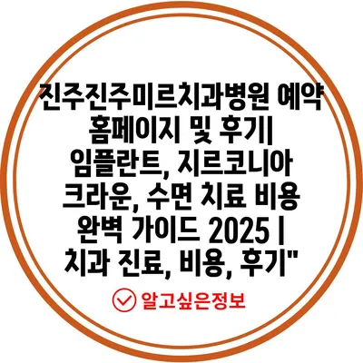진주진주미르치과병원 예약 홈페이지 및 후기| 임플란트, 지르코니아 크라운, 수면 치료 비용 완벽 가이드 2025 | 치과 진료, 비용, 후기”