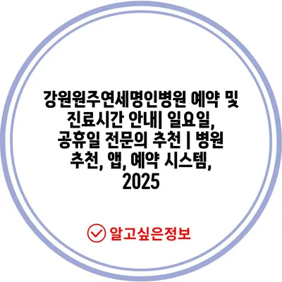 강원원주연세명인병원 예약 및 진료시간 안내| 일요일, 공휴일 전문의 추천 | 병원 추천, 앱, 예약 시스템, 2025