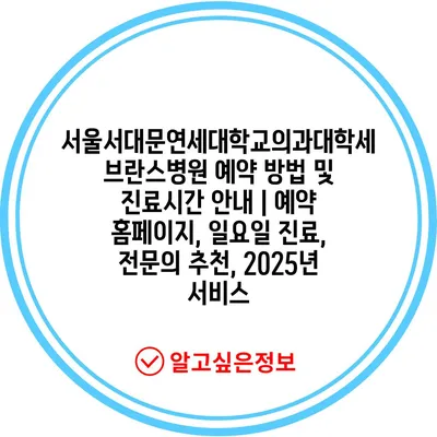 서울서대문연세대학교의과대학세브란스병원 예약 방법 및 진료시간 안내 | 예약 홈페이지, 일요일 진료, 전문의 추천, 2025년 서비스