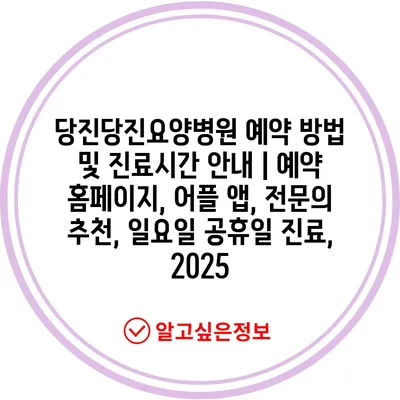 당진당진요양병원 예약 방법 및 진료시간 안내 | 예약 홈페이지, 어플 앱, 전문의 추천, 일요일 공휴일 진료, 2025