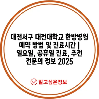 대전서구 대전대학교 한방병원 예약 방법 및 진료시간 | 일요일, 공휴일 진료, 추천 전문의 정보 2025