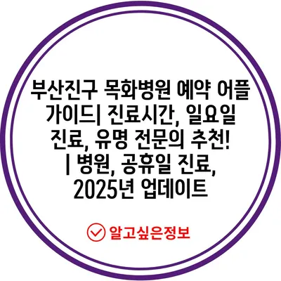 부산진구 목화병원 예약 어플 가이드| 진료시간, 일요일 진료, 유명 전문의 추천! | 병원, 공휴일 진료, 2025년 업데이트