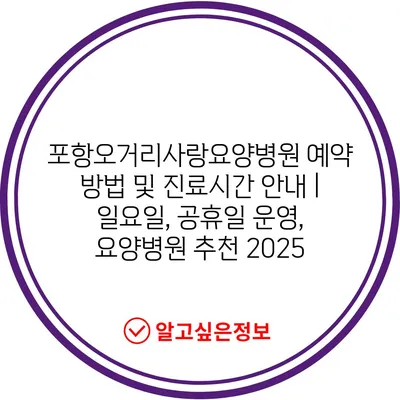포항오거리사랑요양병원 예약 방법 및 진료시간 안내 | 일요일, 공휴일 운영, 요양병원 추천 2025